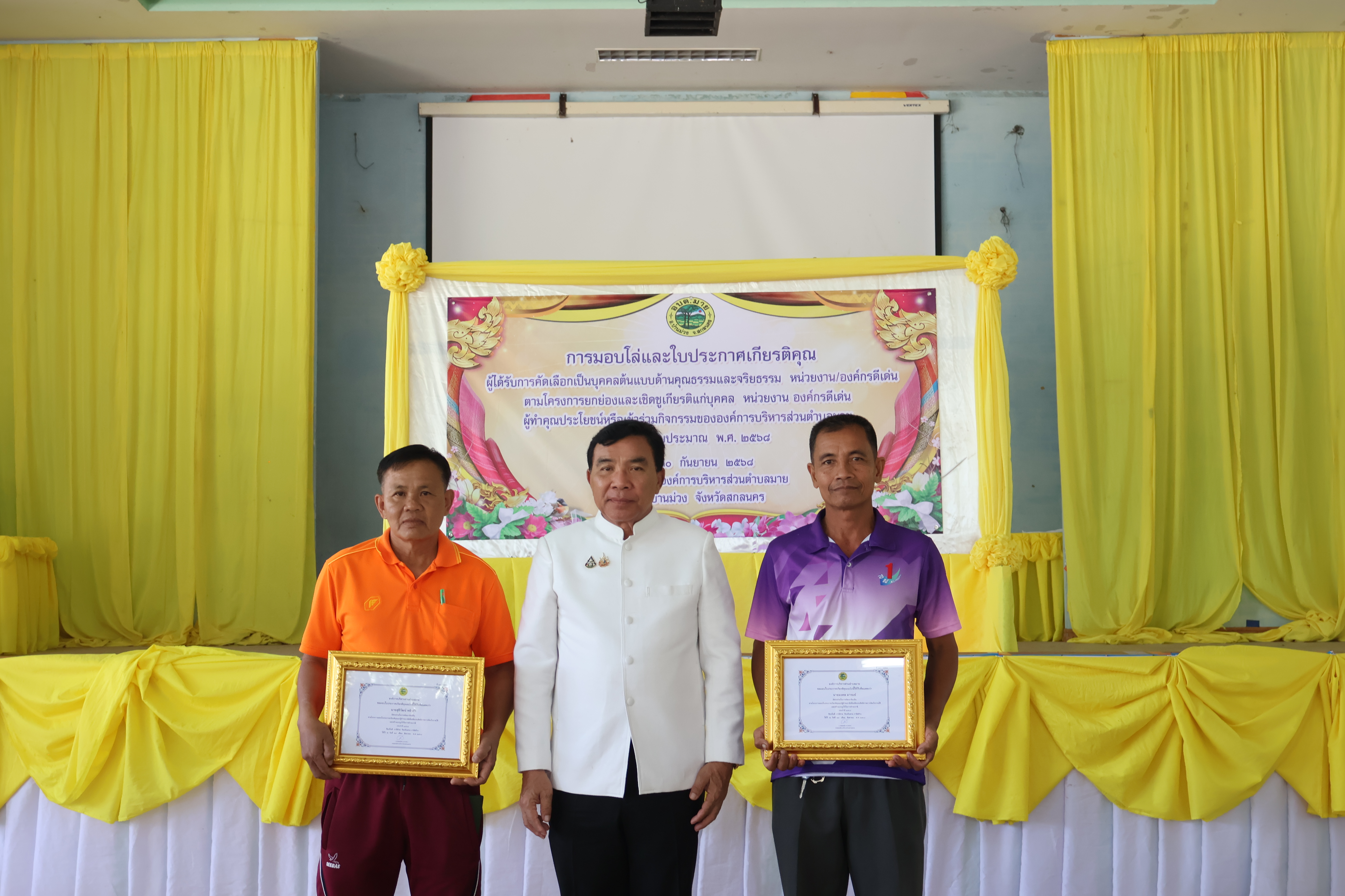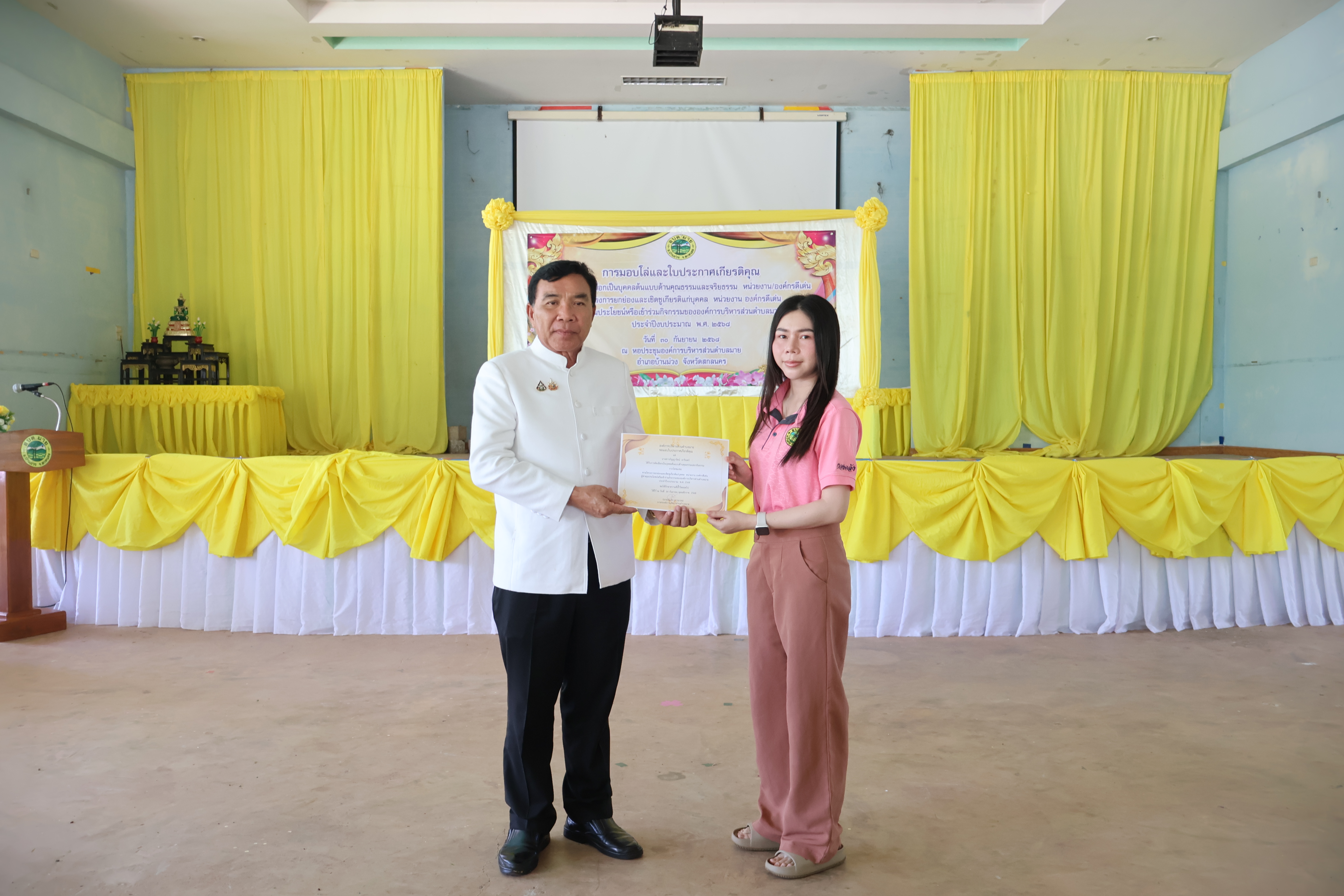 นายสมเด็จ ขาวนาเข นายกองค์การบริหารส่วนตำบมาย พร้อมคณะผู้บริหาร เข้าร่วมการมอบโล่และใบประกาศเกียรติคุณผู้ได้รับการคัดเลือกเป็นบุคคลต้นแบบด้านคุณธรรมและจริยธรรม หน่วยงานอ งค์กรดีเด่น ตามโครงการยกย่องและเชิดชูเกียรแก่บุคคล หน่วยงาน องค์กรดีเด่นผู้ทำคุณประโชน์หรือเข้าร่วมกิจกรรมขององค์การบริหารส่วนตำบลมาย ประจำปีงบประมาณ พ.ศ. 2568 วันที่ 16 ตุลาคม 2568