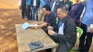 นายสมเด็จ ขาวนาเข นายกองค์การบริหารส่วนตำบมาย พร้อมคณะผู้บริหาร หัวหน้าส่วนราชการ เข้าร่วมรับมอบโครงการชลประทานขนาดเล็กฝายห้วยมาย บ้านหนองบ่อ หมู่ที่ 8 จากสำนักงานชลประทานที่ 5 อุดรธานี