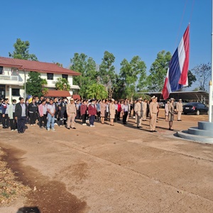 นายสมเด็จ ขาวนาเข นายกองค์การบริหารส่วนตำบมาย พร้อมคณะผู้บริหาร หัวหน้าส่วนราชการ พนักงานส่วนตำบลและพนักงานจ้าง เข้าร่วมเคารพธงชาติและร้องเพลงชาติไทย ในวันจันทร์ ที่ 17 เดือนกุมภาพันธ์ พ.ศ. 2568