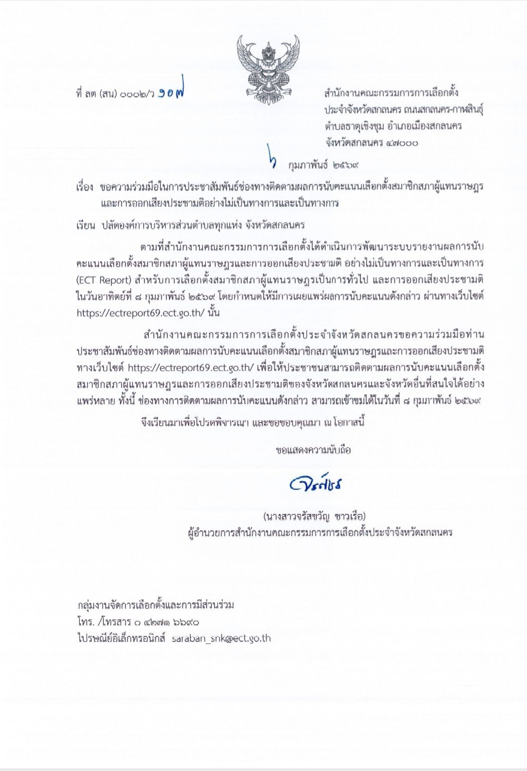 ประชาสัมพันธ์องค์การบริหารส่วนตำบลมาย เรื่อง ช่องทางติดตามผลการนับคะแนนเลือกตั้งสมาชิกสภาผู้แทนราษฎรและการออกเสียงประชามติอย่างไม่เป็นทางการและเป็นทางการ ผ่านทาง https://ectreport69.ect.go.th